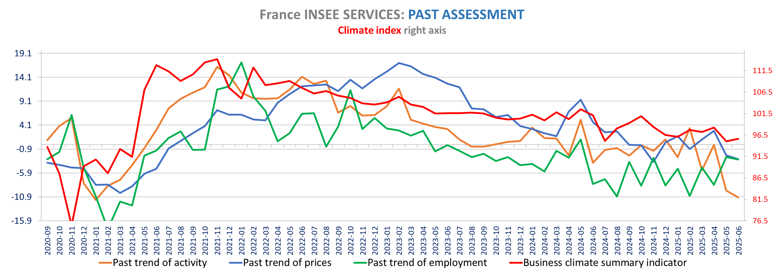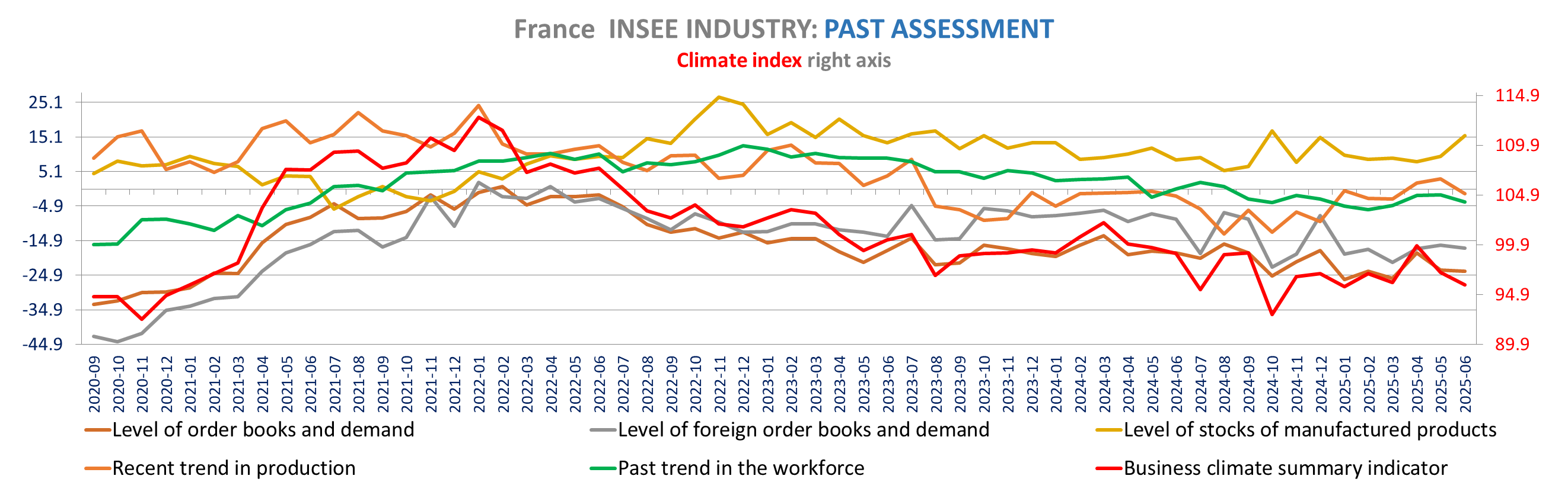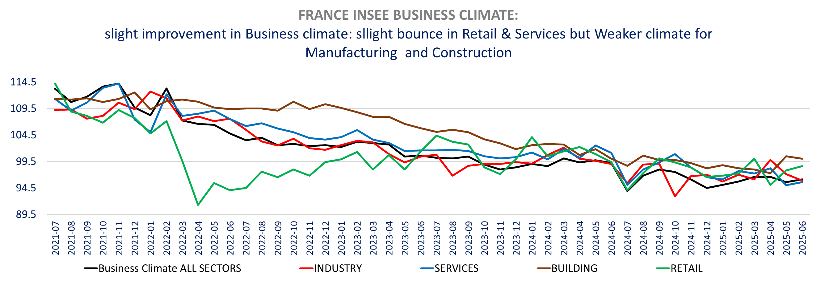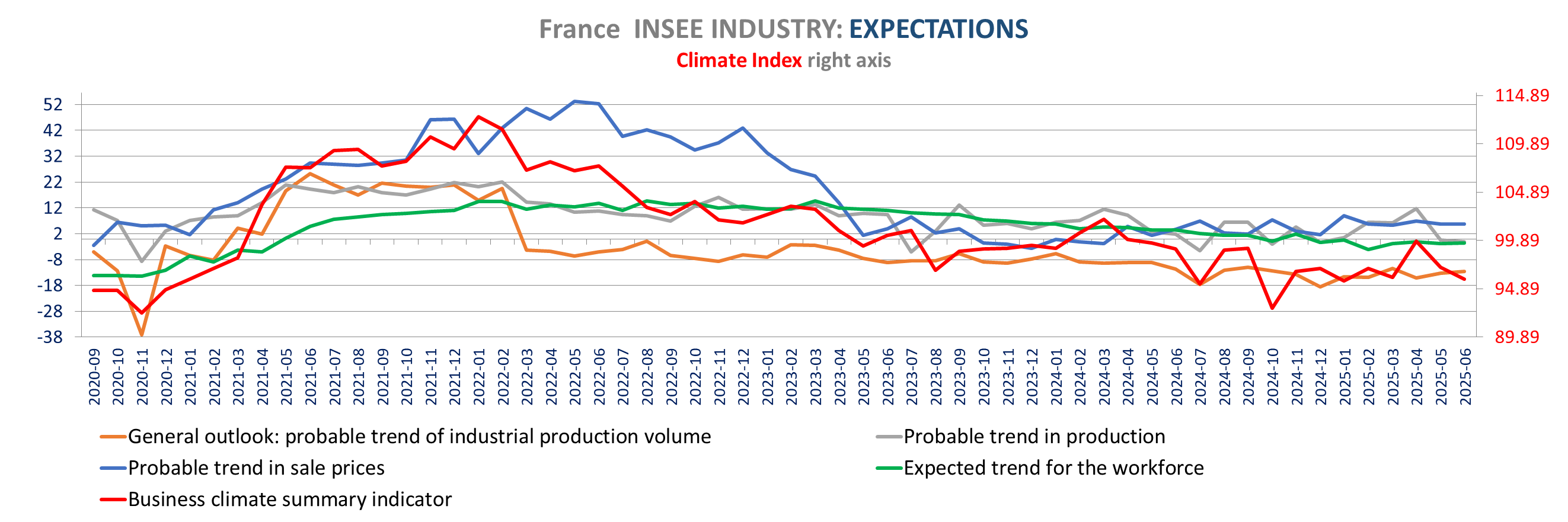 The INSEE Price expectations are lower and negative across sectors but manufacturing where the balance is at +5.8 unchanged from the revised May but higher than the preliminary data of 5.6.
