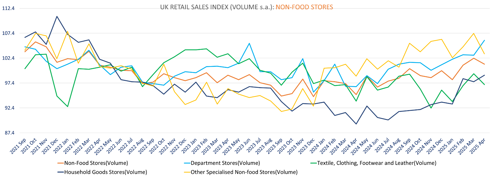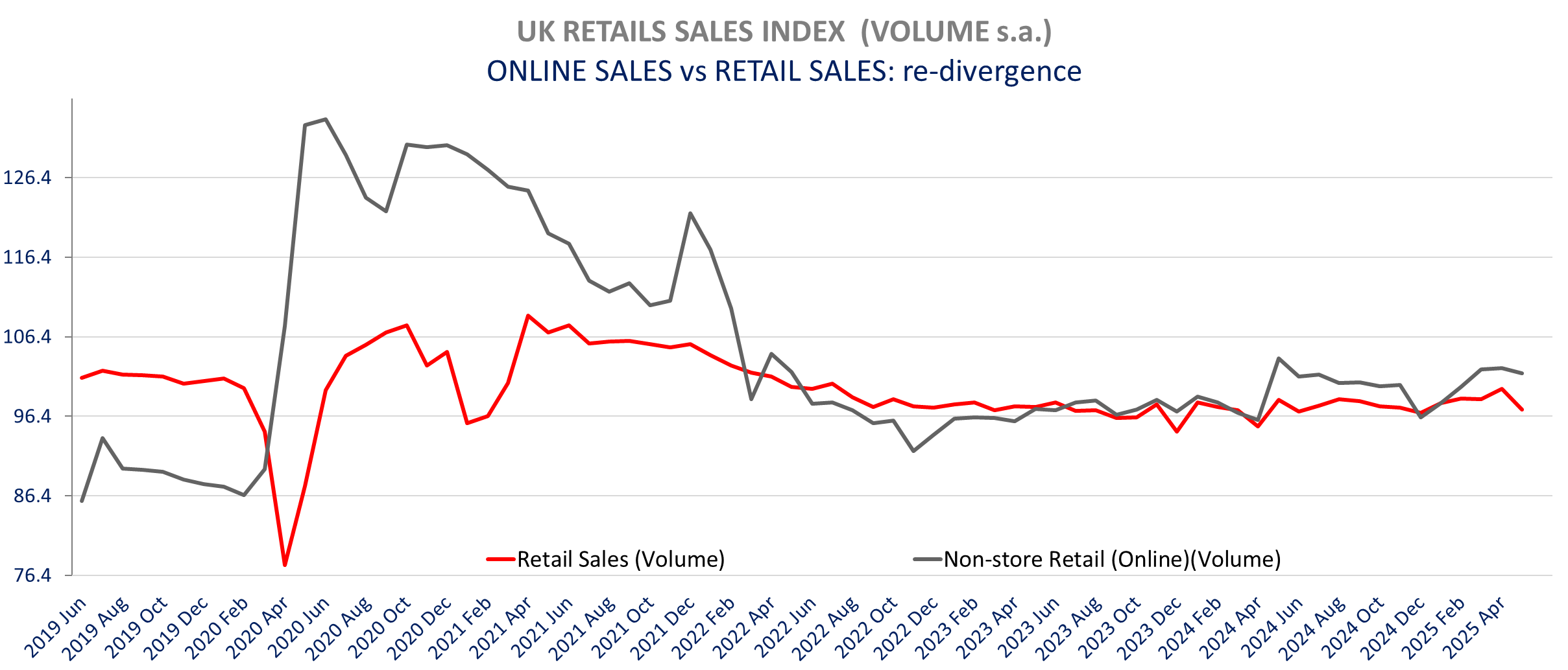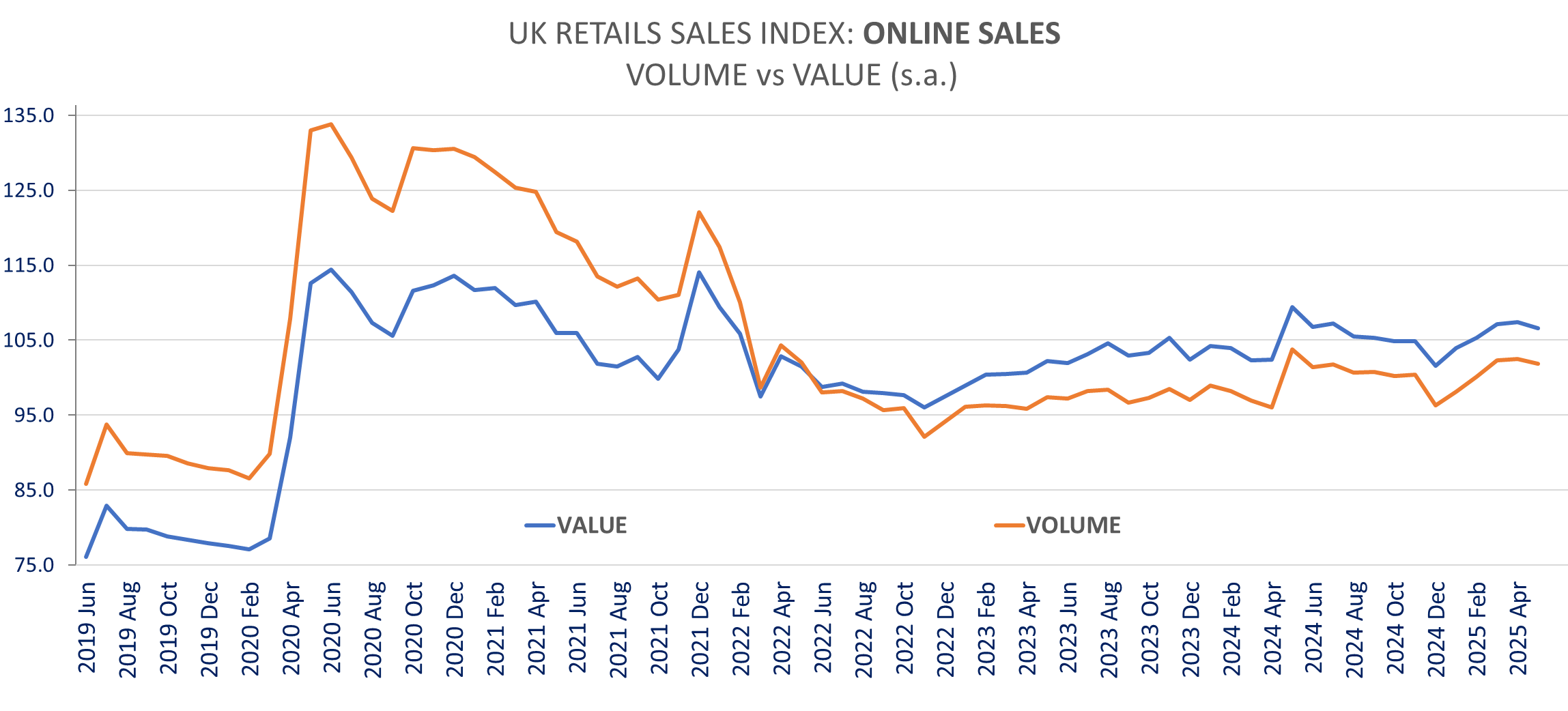 Online sales resisted much better in May, down only -0.7% m/m, both in value and volume.