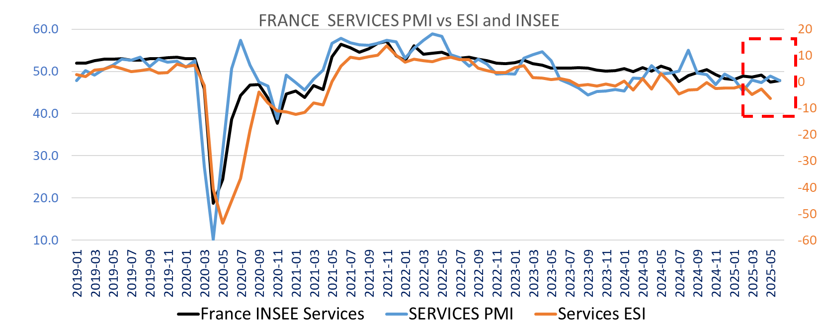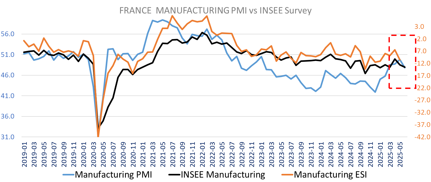 The improvement in Germany was compensated by weakness in France (aligned with last week’s INSEE survey).