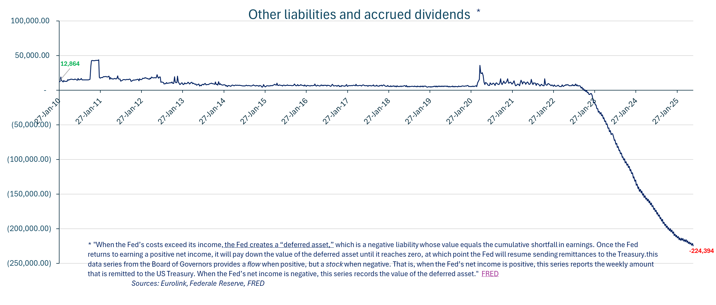 The Fed losses continue to increase, reaching -$224.39bn as of last Wednesday.