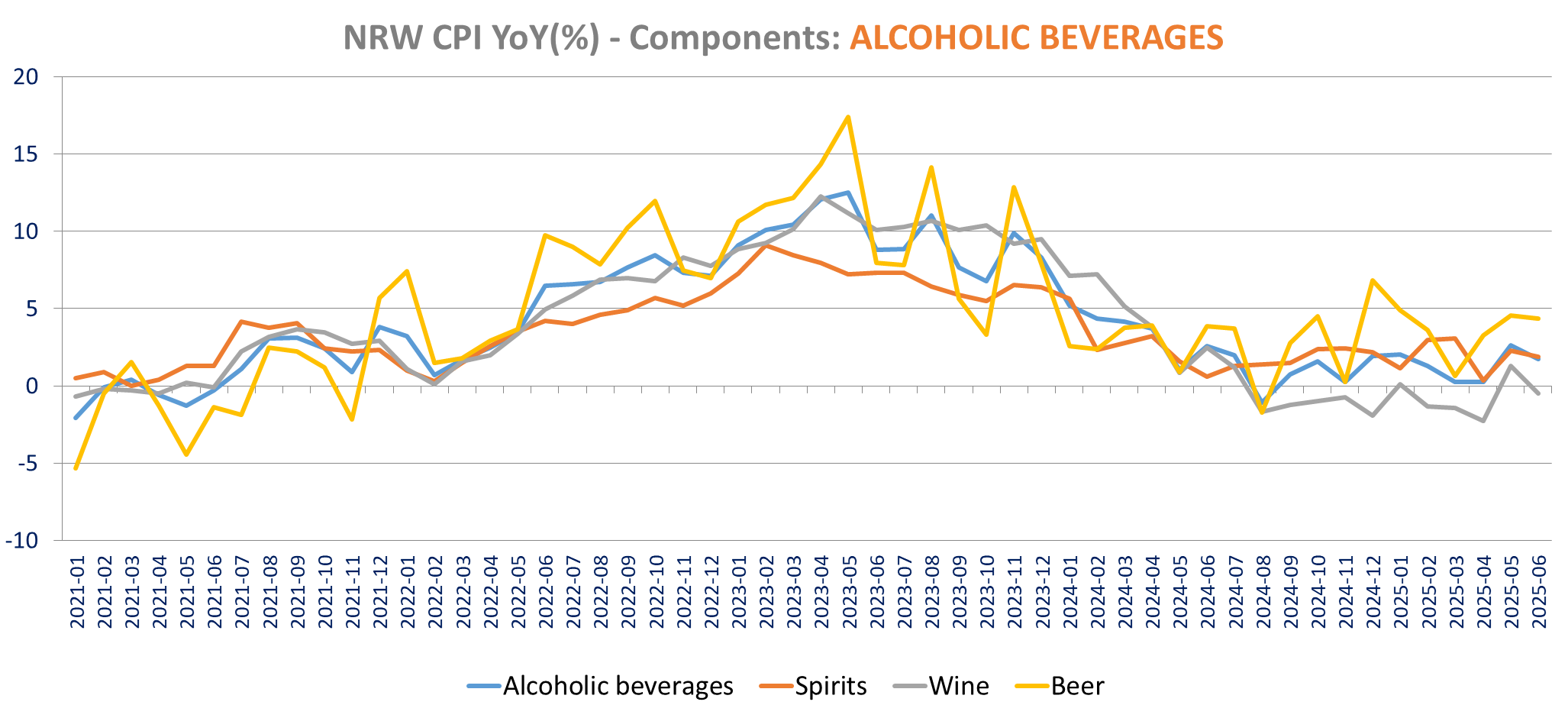 Alcoholic beverages inflation is down to 1.8% from 2.6% (especially down for wine).