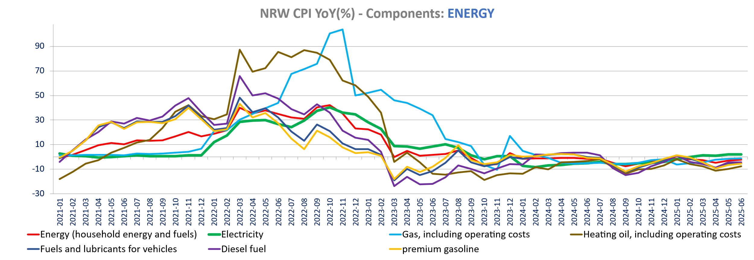 Indeed, Destatis just released the CPI data, down to 2% from 2.1%, lower than expectations of 2.2%. Food inflation declined to 2% from 2.8%, services inflation eased to 3.3% from 3.4% and goods inflation fell to 0.8% from 0.9% (due to food) while energy inflation increased to -3.5% from -4.6%. The details for NRW shows a relatively broad-based decline in services inflation. NRW also shows the decline in food was mainly driven by vegetables, Oil & fats and dairy. The increase in energy inflation is driven by gas and liquid fuel. We also note further increase in used cars inflation in NRW to 7.4% yoy from 7%, (see NRW details below)