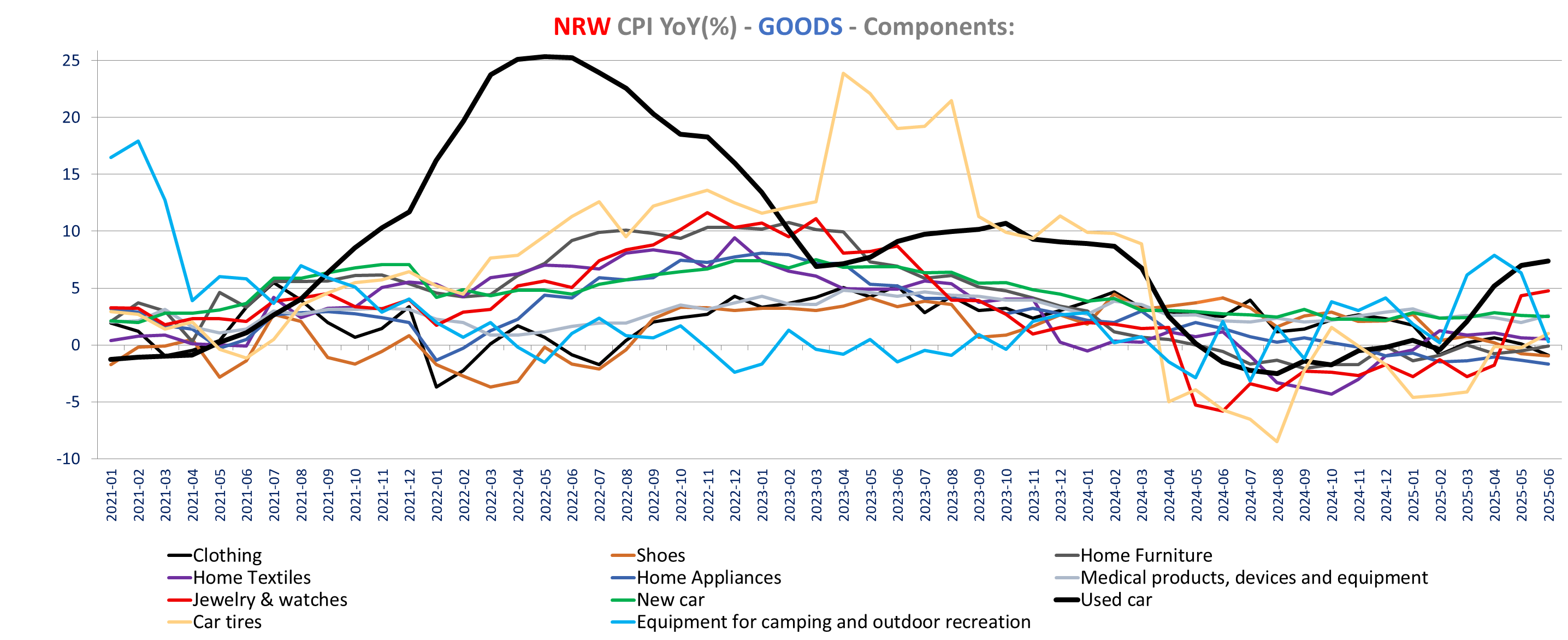 For other goods we note lower inflation for clothing, footwear, home appliances, camping & outdoor equipment, home textiles and medical products, but slightly higher inflation for furniture, tires, jewelry & watches. Inflation increased again for used cars to 7.4% yoy from 7%, new car inflation is slightly lower at 2.5% vs 2.6%