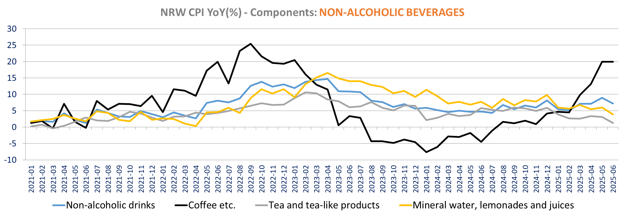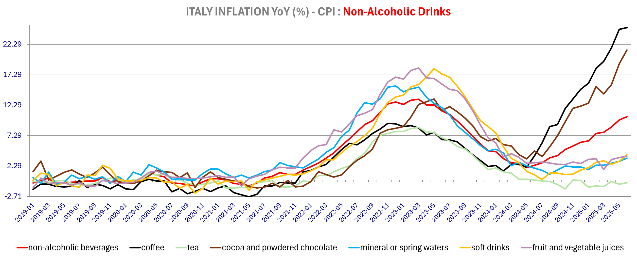 Non-alcoholic beverages inflation increased again to 10.4% from 9.8% with coffee up (25% vs 24.7%) along cocoa-based drink (21.4% vs 19.1%), soft drinks (4.1% vs 3.05%), Juices (3.9% vs 3.7%) and mineral water (3.6% vs 3%).