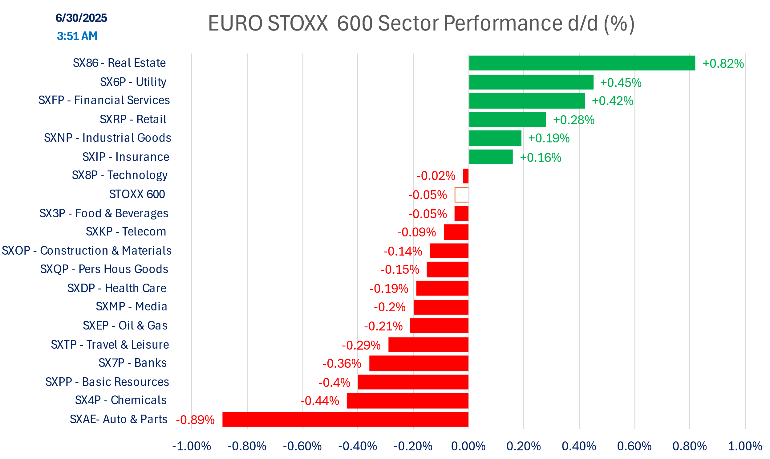 Last day of the quarter, half year, official week of summer vacation start in most Europe, ECB Sintra summit (June 30-July 2) difficult delivery of a coherent “big, beautiful bill” by the 4th of July… and of course, tariffs, 10 days before the July 9 deadline. Some optimism on tariffs as Canada promptly dropped the 3% digital tax in order to continue negotiations after Trump utterance on Friday. European seems optimistic that a framework could be agree upon to continue negotiations post July 9.