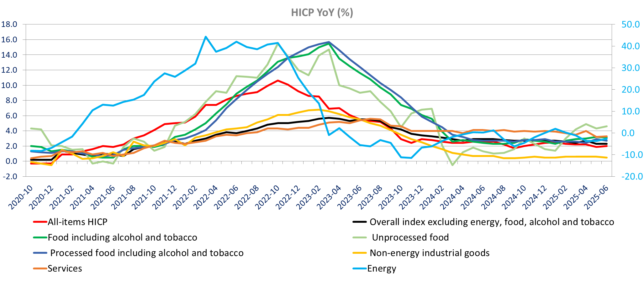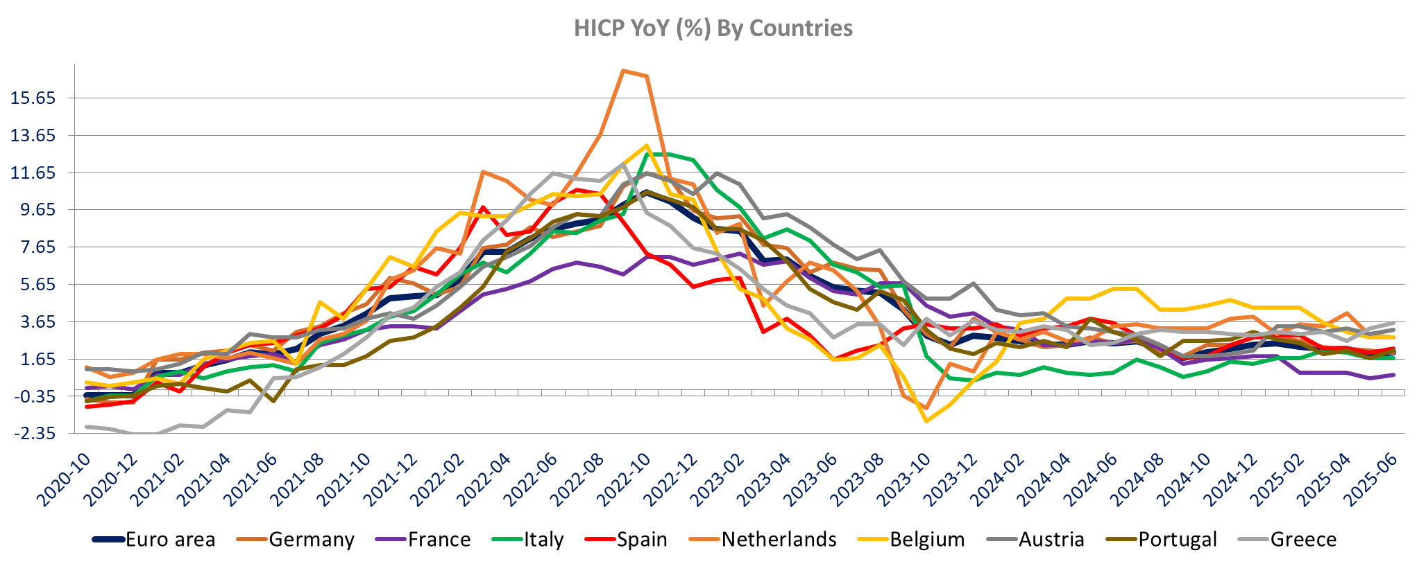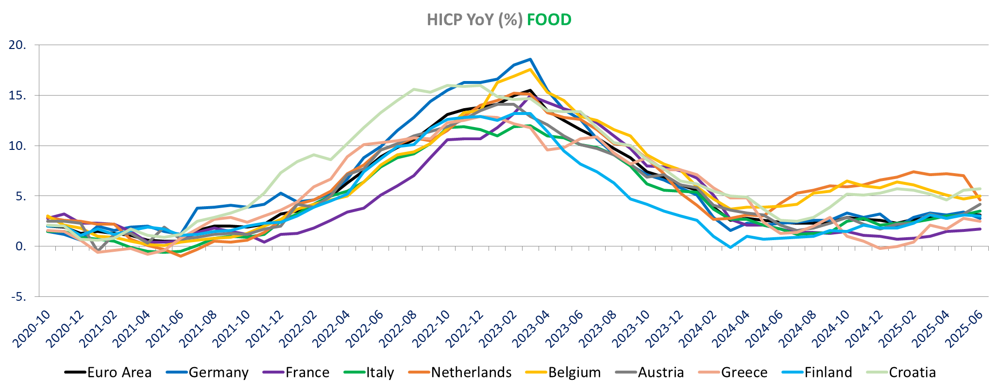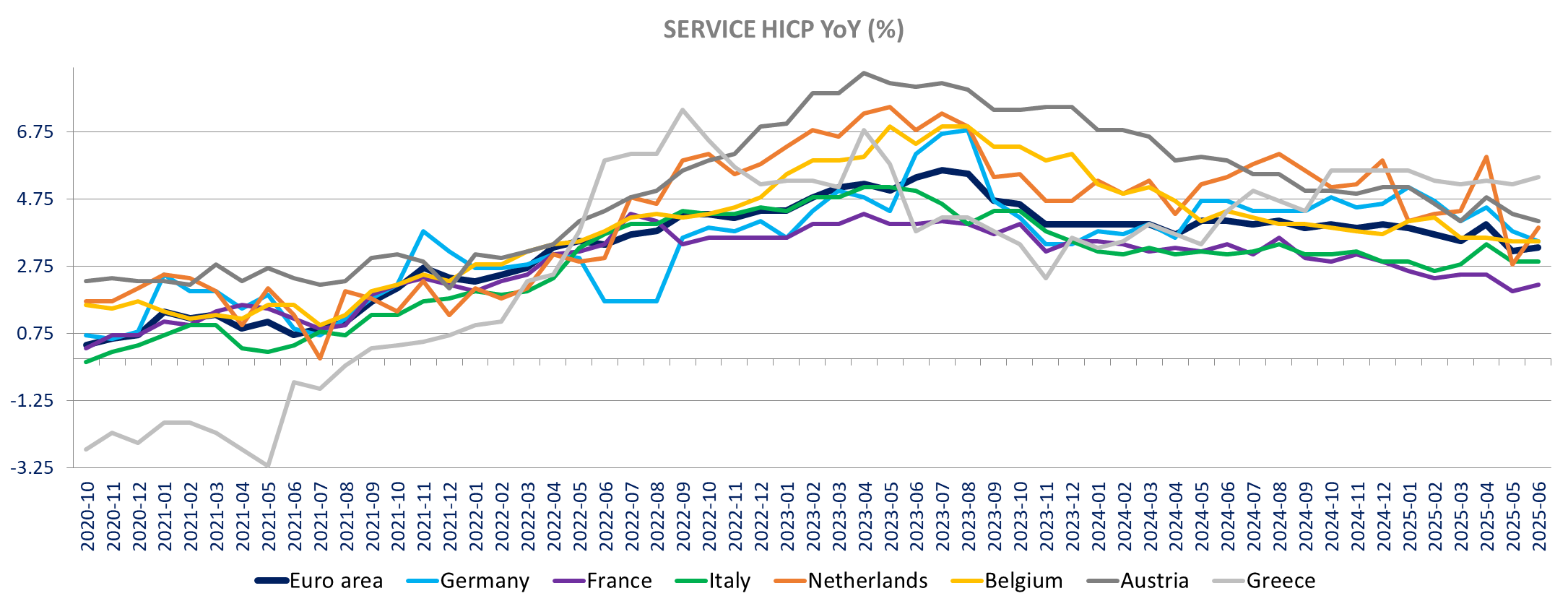 Services inflation is down in Germany, Austria, Finland and Croatia, unchanged in Italy and up in the other countries