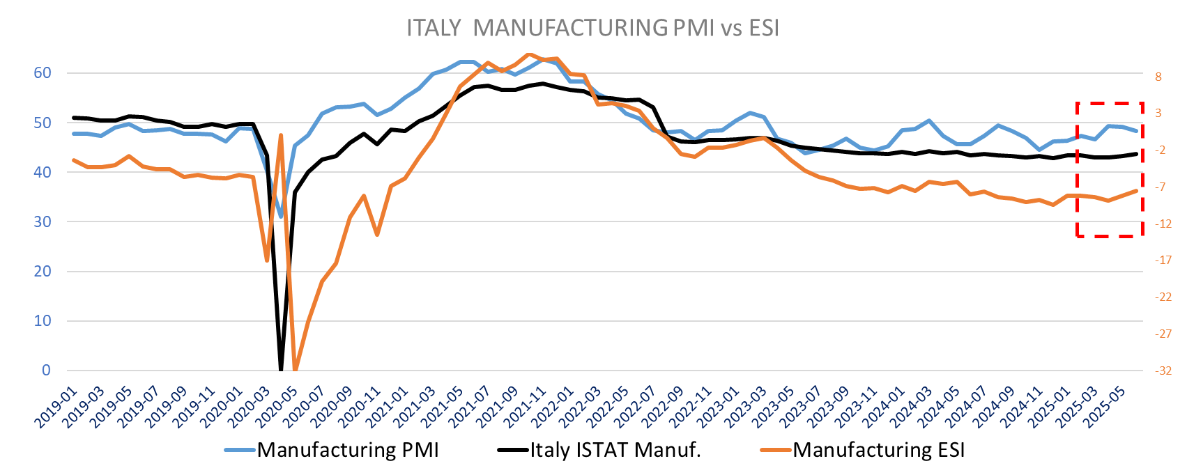 For Italy the ESI manufacturing was up as was ISTAT, moving the opposite direction than the PMI