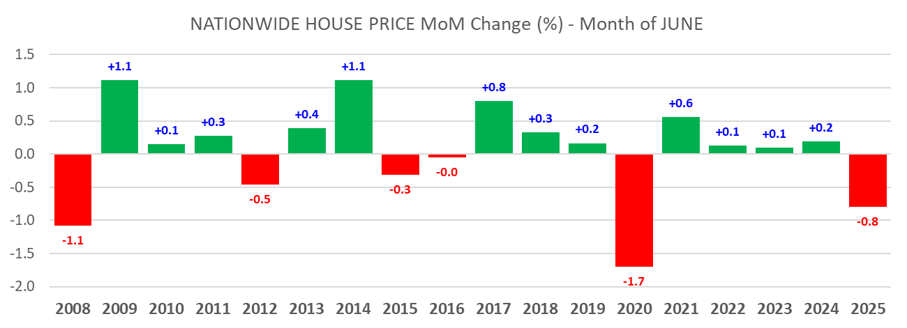 The June nationwide housing data is also disappointing with prices declining -0.8% m/m in June, the worst June on record since the GFC (June 2008) If on excludes covid