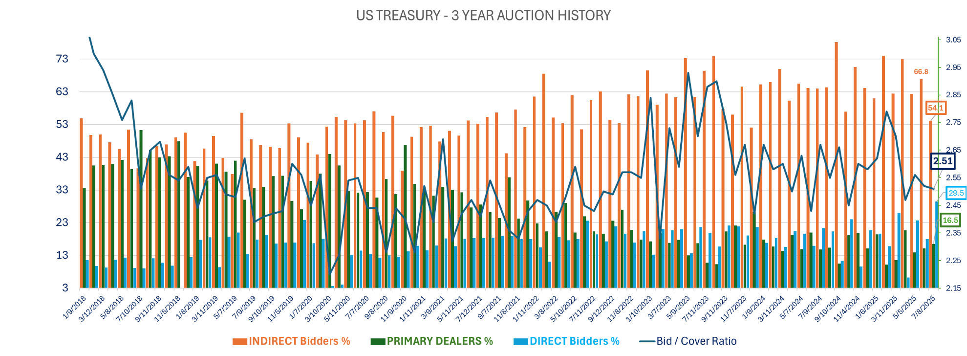 Lower demand (bid cover at 2.51, lowest since April 2024), higher dealers’ share (16.5% vs 15.5% average and highest since April) while indirect bid fell to 54.1% weakest since December 2023 (66.5 average over the last 12 auctions) …
